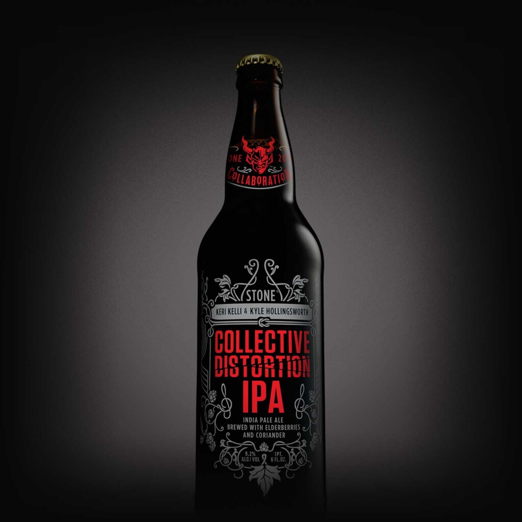 Stone Brewing Company—Collective Distortion IPA. The collaboration “band” consisted of the Stone Brew Crew, led by Brewmaster Mitch Steele (who is the guitarist of Craigsband and Stone’s house band, The Flocculators); hard rock guitarist Keri Kelli (who has played with the likes of Alice Cooper, Skid Row and Slash from Guns N’ Roses); and keyboardist Kyle Hollingsworth of The String Cheese Incident. Together, back in 2014, they brewed an epic double IPA infused with elderberries and coriander and named their magnificent creation Collective Distortion IPA. Fans enjoyed the beer in 22-ounce bottles and on draft at select retailers, restaurants, and bars across the U.S.